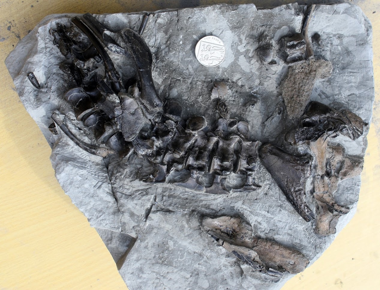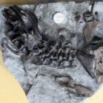 Several blocks containing partially disarticulated skull, shoulder and vertebral column