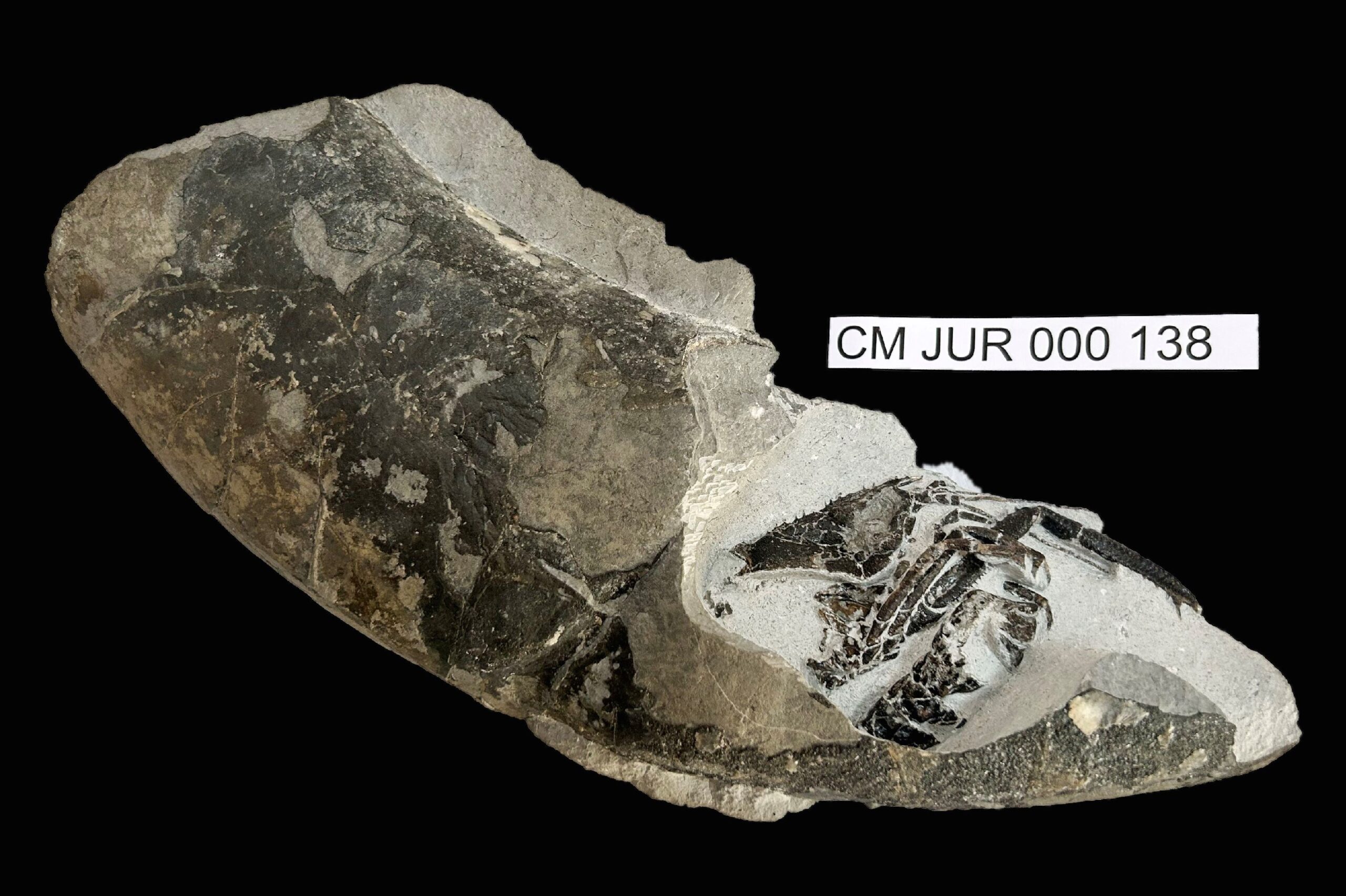 Lobster preserved inside ammonite body chamber.