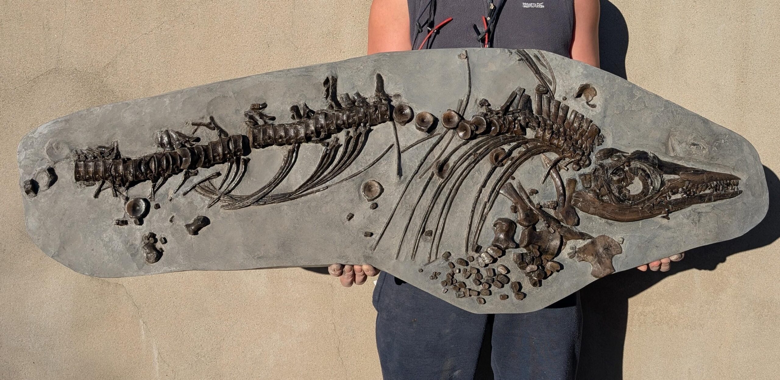 Slightly disarticulated specimen, missing the tail.