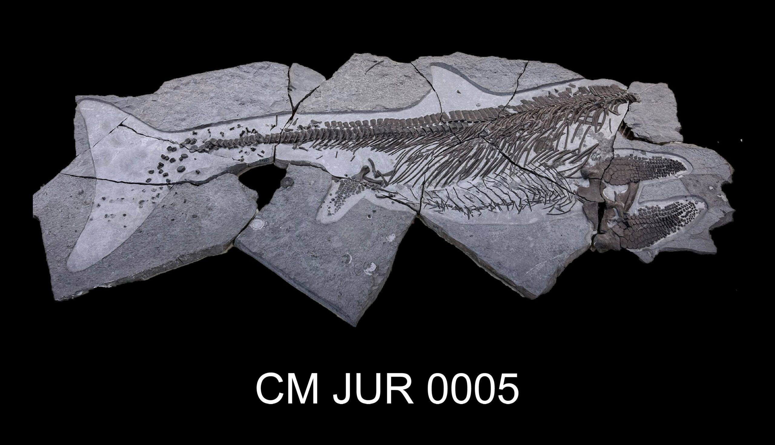New and undescribed species. 3D specimen preserved in limestone. Articlated, in life position with soft tissue. Missing head was predated.