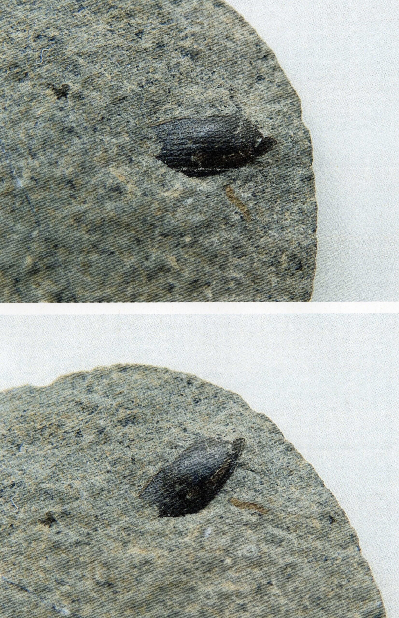 3D preservation of an indeterminate elytron. Total length 4mm, scale bar =1mm.