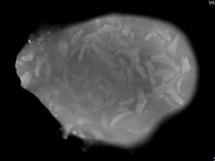 A nodule (Green Ammonite beds) containing 20+ disarticulate Hybodus teeth. Possible new species.