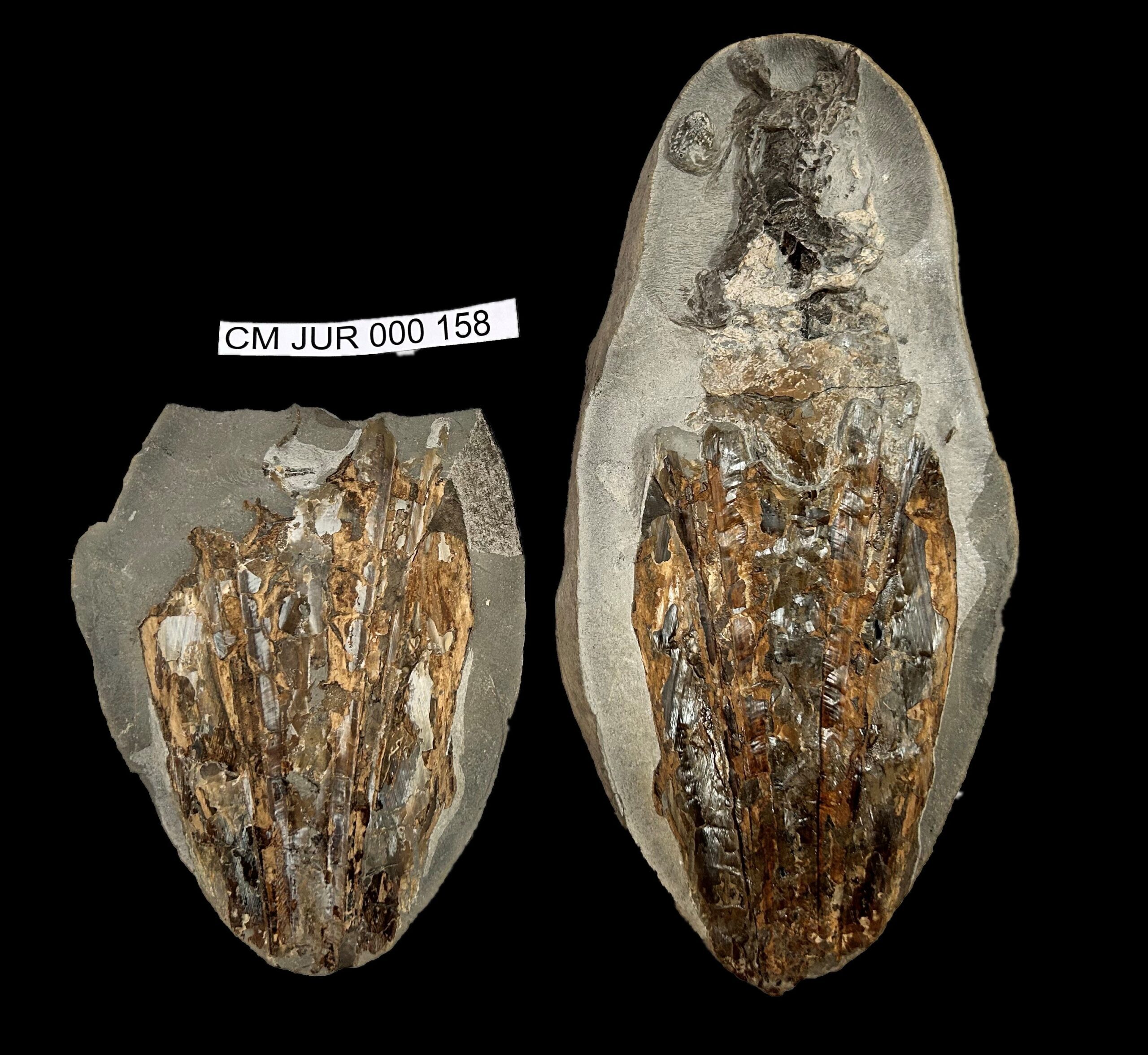 Split nodule with soft part preservation. Jaws in life position, unique. Part and counterpart.