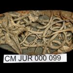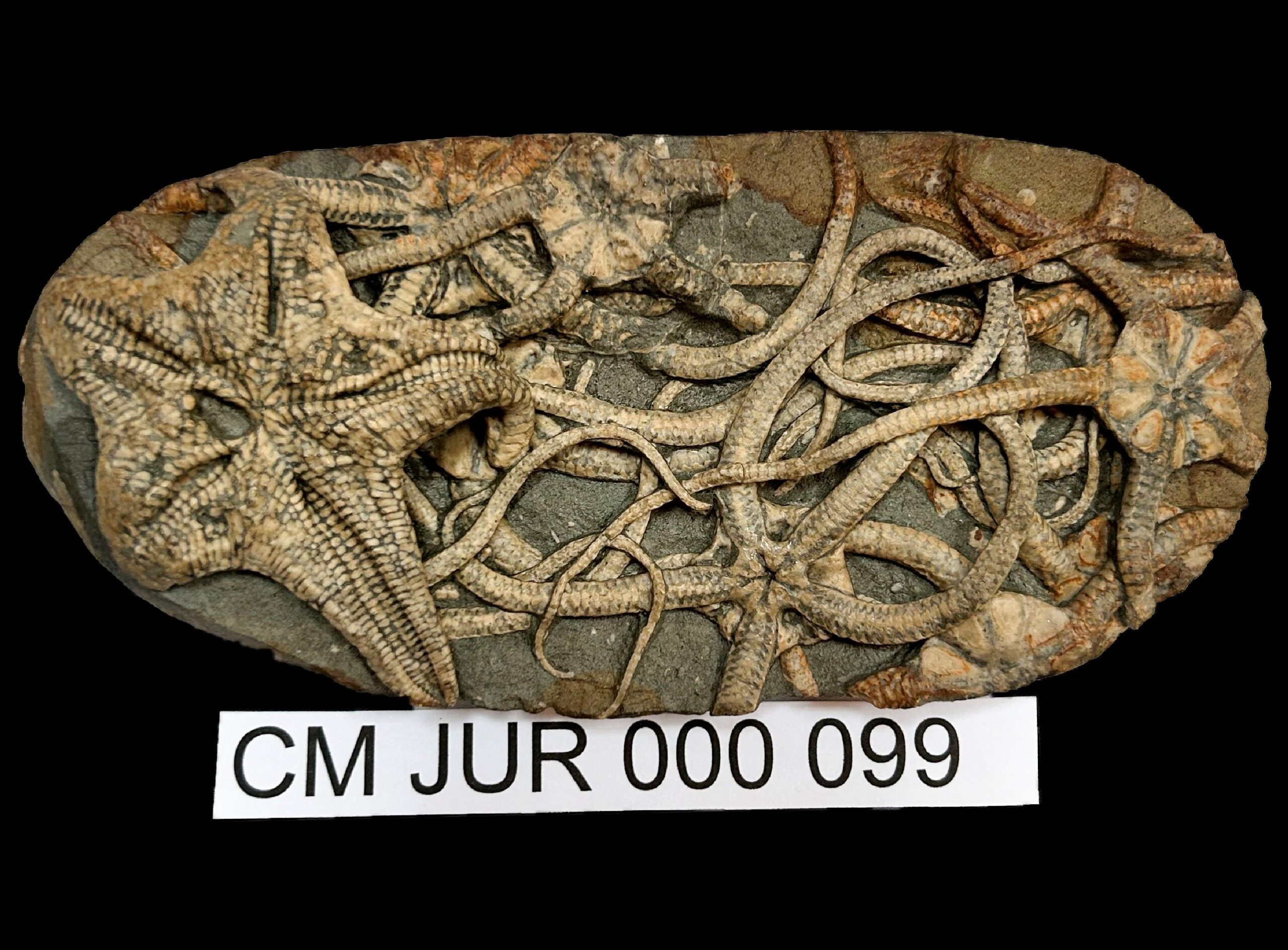 Regular starfish and brittlestar. Beautiful beach pebble containing multiple specimens. Only the second Tropidaster found at Eype Beach