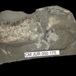 Unknown specimen, possibly a jellyfish or cuttlefish with soft part preservation. Possibly Jellyfish or part of Cuttlefish.